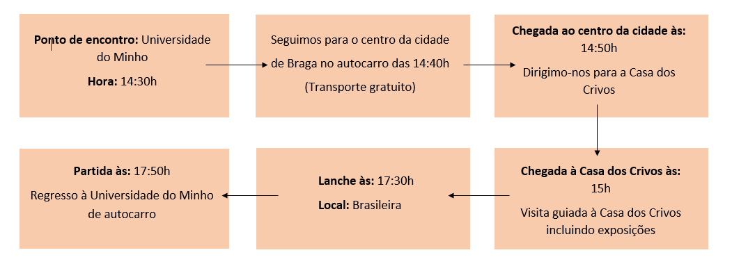 Daí seguimos para o centro da cidade de Braga, uma cidade cheia de história e beleza, onde se encontrava a Casa dos Crivos, um local restaurado pela Câmara Municipal de Braga, que, ao longo do ano, expõe obras de diversos artistas. Quando lá fomos a exposição que lá estava exposta era de Carlos Teixeira intitulada de "Ruralidade", um conjunto de obras de arte que nos agradou bastante. À chegada fomos muito bem recebidas pelo guia que nos explicou um pouco da história desta casa cheia de cultura, como acima vos contamos.